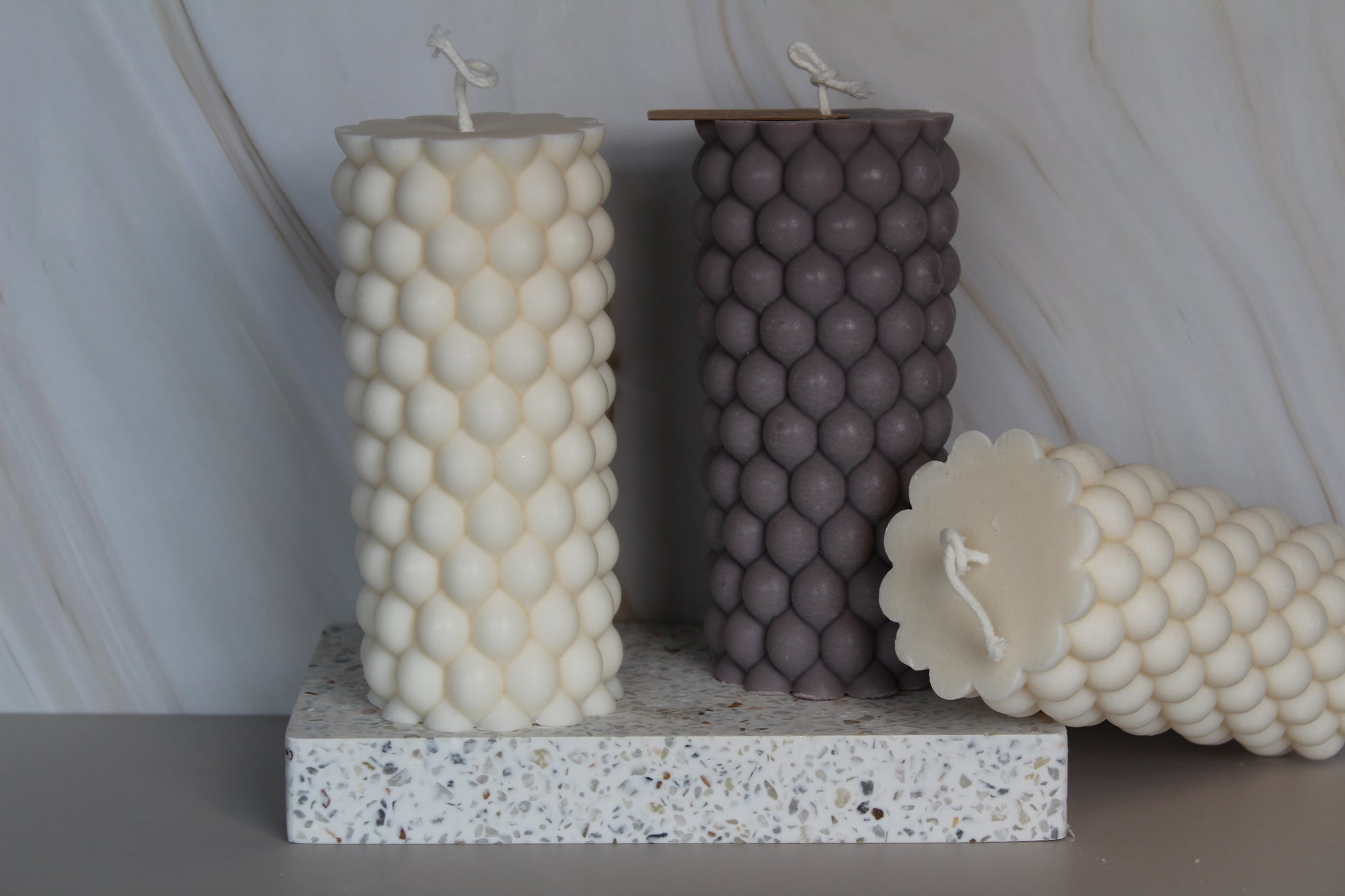Geef je interieur een stijlvol accent met onze Colomn Drop Kaars – een elegante pilaarkaars met een unieke, druppelvormige bubbelstructuur. De afgeronde vormen geven de kaars een zachte en luxe uitstraling die perfect past in een modern, minimalistisch of romantisch interieur.