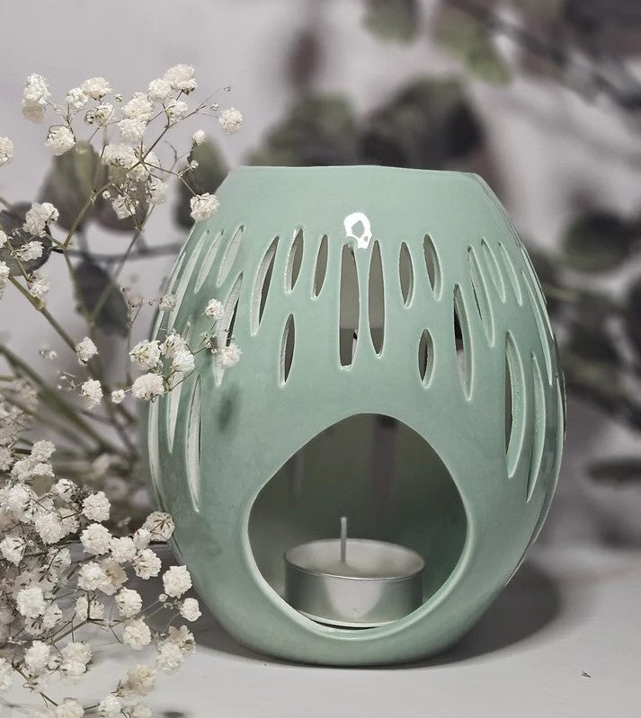 Deze waxbrander combineert een stijlvol ontwerp met een zachte mintgroene kleur die perfect past in elke ruimte. De ovale uitsparingen zorgen ervoor dat het kaarslicht een warm en sfeervol patroon in de kamer creëert. Plaats een waxmelt of geurolië bovenin en een theelichtje onderin, en laat je omhullen door een heerlijke geur en ontspannend licht.